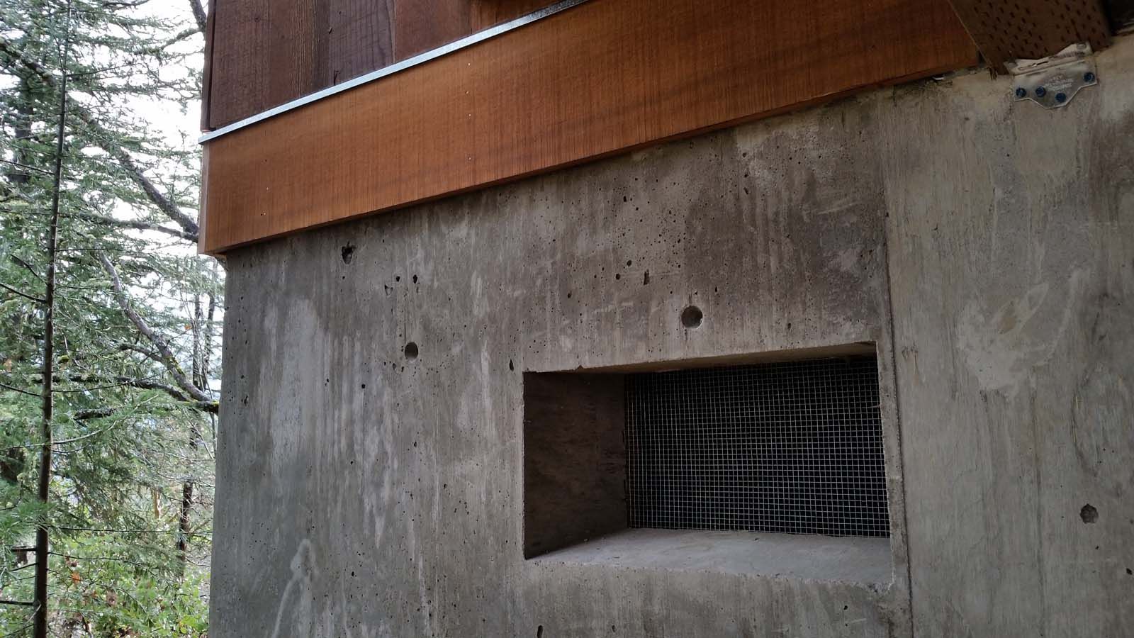In 2015 and 2016 we replaced the foundation and the floor framing and beams under the kitchen-living building and extensive deck of a large three-building home. We used full-height wood-grained concrete stem walls and connected them to the cedar siding with a clear cedar band trim. We leveled the building and attached it to the foundation to resist seismic forces. We re-built the edge of the roof eaves and installed fascia trim and gutters. Then we installed roof and foundation drains.